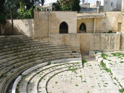 1. è un teatro romano con pianta impostata sui teatri greci ed è forse l’unico in tutta la regione meridionale. Poi viene quello di Taormina.
