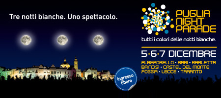 Per il ponte dell’Immacolata in Puglia, si terrà un evento imperdibile senza precedenti “Puglia Night Parade“, ben 3 notti bianche dislocate nelle località più importanti della Puglia.